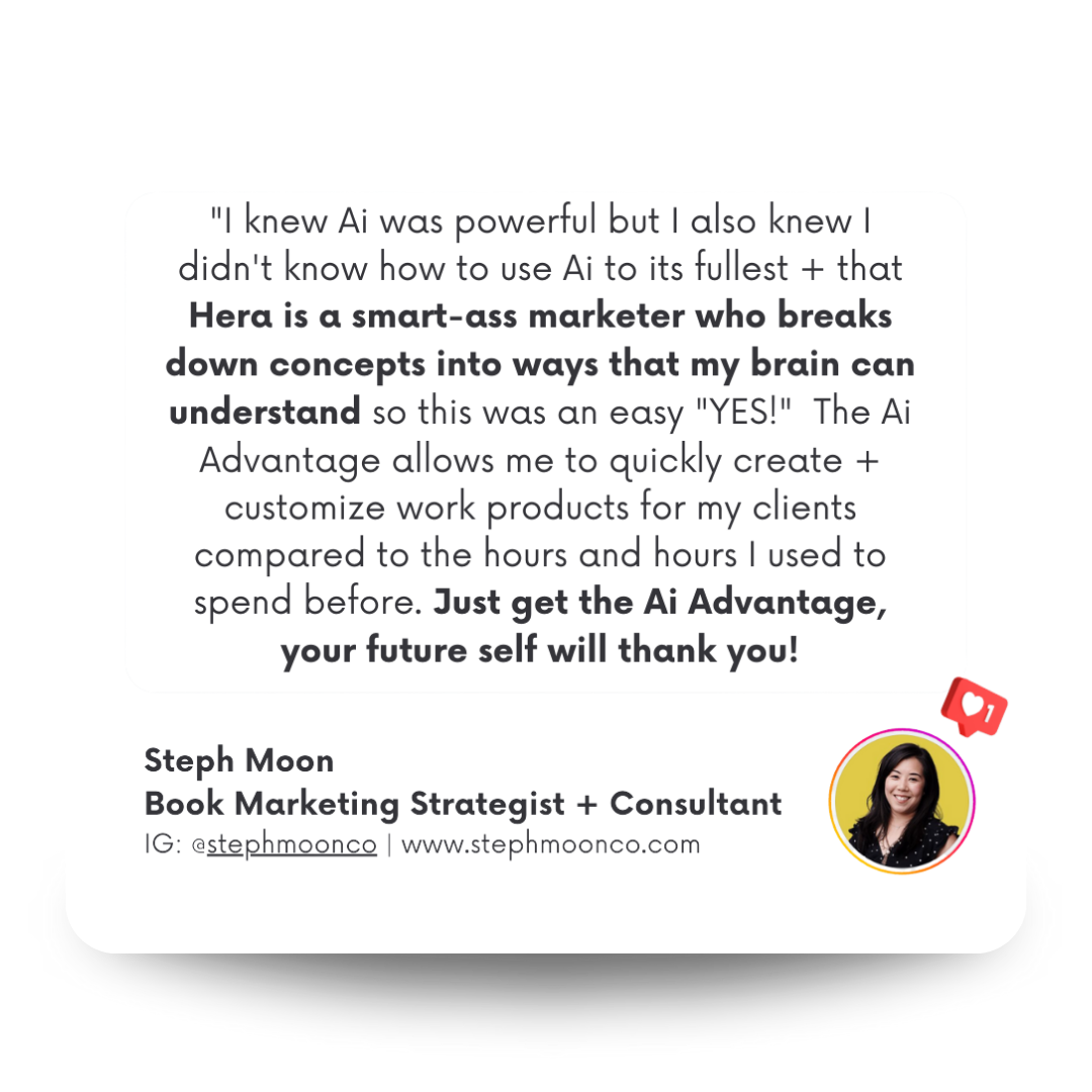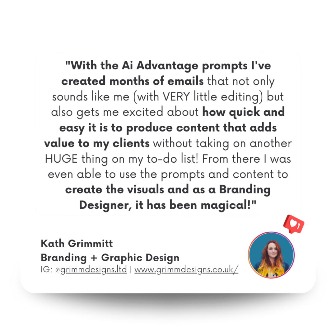 Having the Ai Advantage means you're doing more than just using it. This program will teach you HOW to partner WITH Ai as your Ai-ssistant to make you SALES.